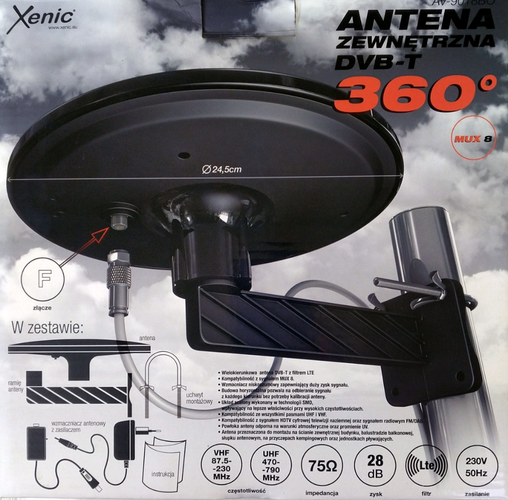 ВНЕШНЯЯ АНТЕННА 360 DVBT ТВMUX8 LTE AV9003S купить с доставкой из Польши с Allegro на FastBox 7054564170